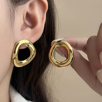 Mới hợp thời trang retro hình học Stud Bông Tai Cao cảm giác titan thép không gỉ bất thường thiết kế rỗng mạ Vàng Kim Cương thép không gỉ